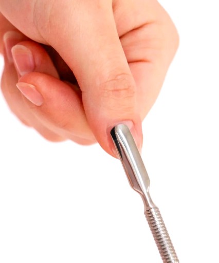 Wyprofilowana, perforowana rączka zapewnia szybką i komfortową pracę. W całości wykonane ze stali nierdzewnej. Dłutko idealnie odsuwa i usuwa skórki i błonki z powierzchni paznokci, nadaje się także do usuwania pozostałości lakieru hybrydowego.