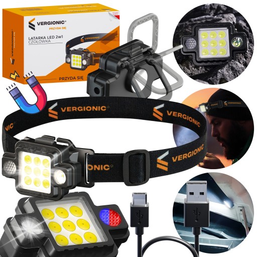 LATARKA CZOŁOWA AKUMULATOROWA LED CZOŁÓWKA WARSZTATOWA NA GŁOWĘ Z MAGNESEM ⭐️⭐️⭐️⭐️