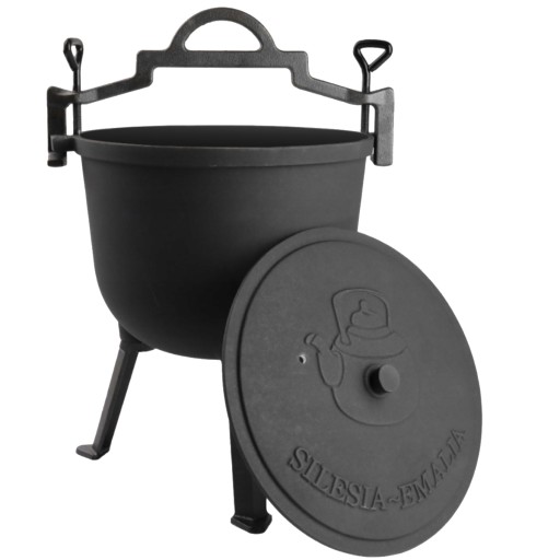 ЧУГУННЫЙ КОЛДЕЛЬ охотничий горшок для костра SILESIA EMALIA 8л