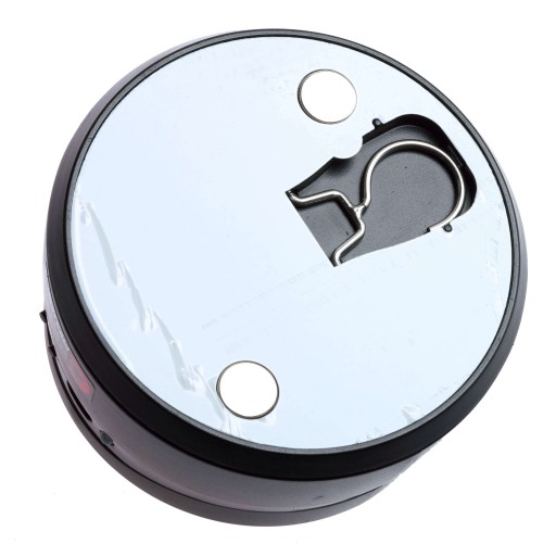 - Lampkę można zawiesić za pomocą metalowego haczyka lub przymocować dzięki wewnętrznym magnesom i metalowemu dyskowi