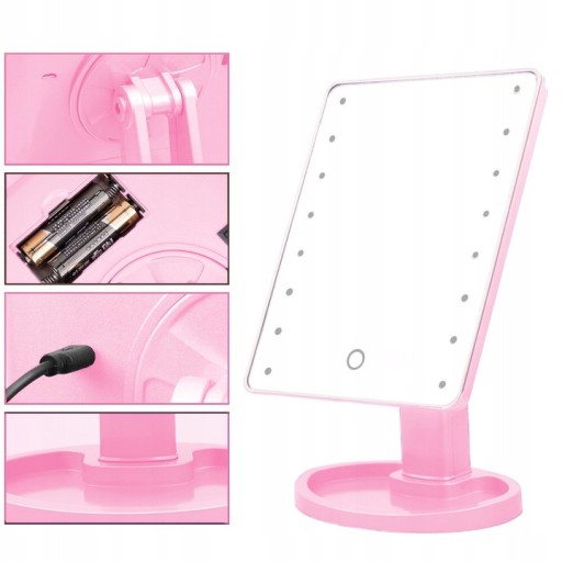 Diody LED umieszczone na bokach lusterka pozwolą wykonać perfekcyjny makijaż, niezależnie czy wykonujesz go w idealnym oświetleniu, czy w pomieszczeniu gdzie nie ma wystarczająco światła.