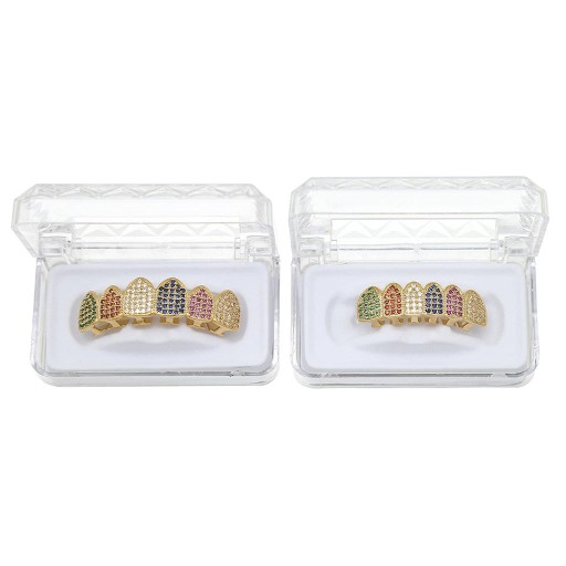 Pozłacana 18-karatowym złotem kryształowa cyrkonia Górna i dolna kratka z kłami Grille na zęby #3