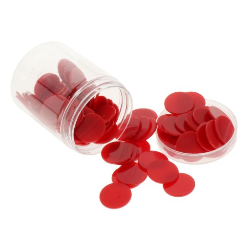 Пластиковые жетоны в форме монет диаметром 25 мм, 100 красных цветов