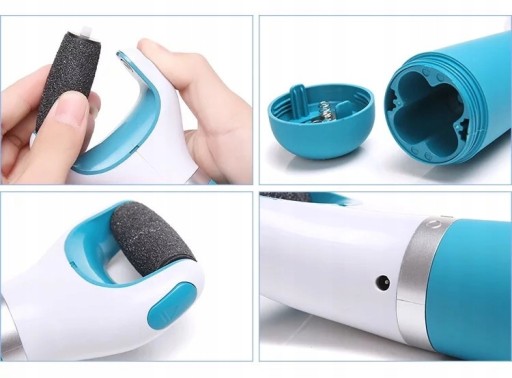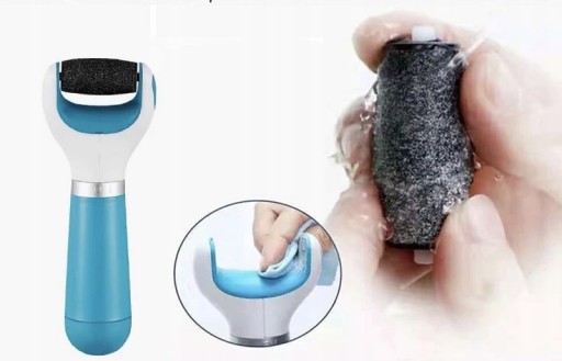Rolka szlifierska obraca się z dużą prędkością o 360°. Dzięki temu skutecznie, ale delikatnie poleruje twardą skórę pięt.