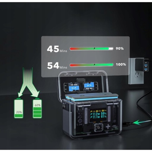 Inteligentna skrzynka ładująca 3 w 1, dwukanałowy koncentrator szybkiego ładowania, konwerter power banku i organizer baterii 3 w 1.