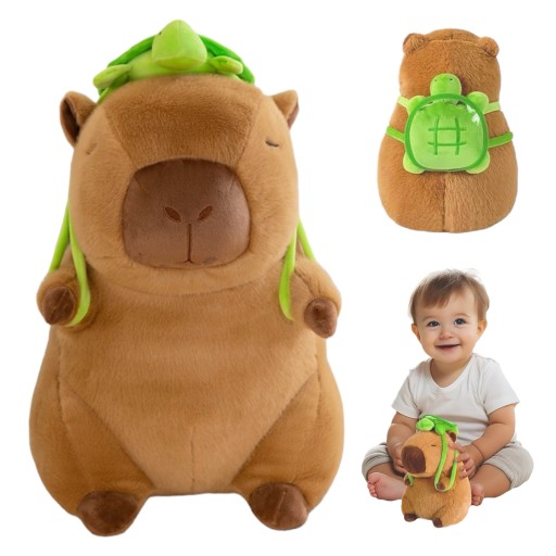 PLUSZAK MASKOTKA KAPIBARA Z PLECAKIEM 35 CM Z PLUSZOWYM ŻÓŁWIEM