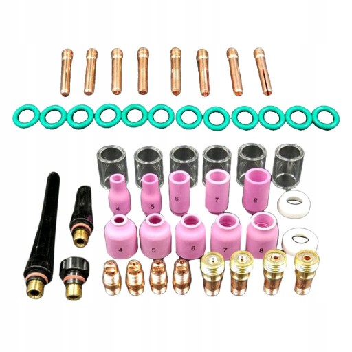 : This one contains 49 pieces, including gas lens, alumina nozzles, cups, collets Fit for WP-17/18/26 Tig torch Applicable scope: TIG Size: 10x8x5cm
