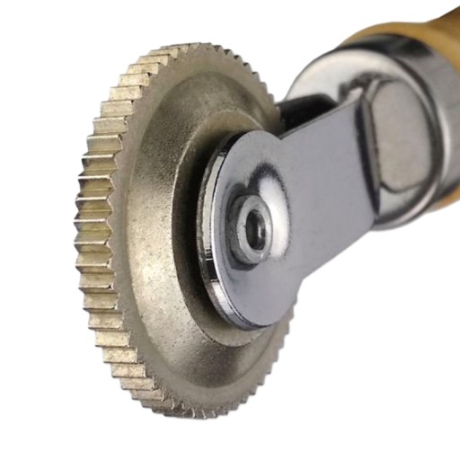 Profilowana rączka zapewnia pewny chwyt. Rolka dociskowa porusza się bardzo płynnie a wąski profil docisku pozwala na precyzyjne operowanie zarówno na dużych jak i małych łatkach.