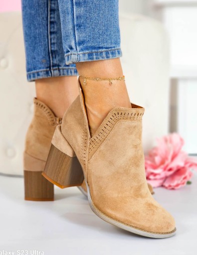 Beżowe Zamszowe Botki Na Obcasie Słupku Fenny 41