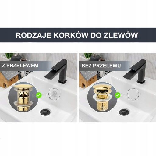 ⭐KOREK UMYWALKOWY KLIK-KLAK AUTOMAT BEZ PRZELEWU ZŁOTY