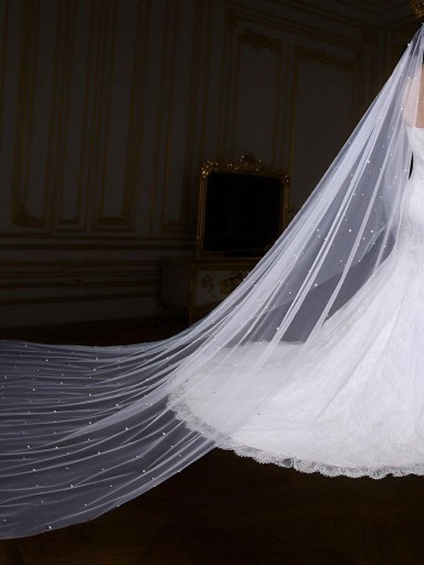 1 ШТ. ДЛИННАЯ СВАДЕБНАЯ ФАТА ЭКРУ С ИСКУССТВЕННЫМ ЖЕМЧУГОМ гребешок ШЕЙН
