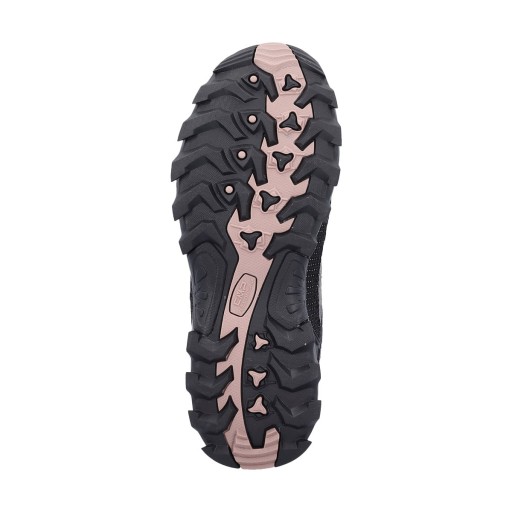 Podeszwa - oparta o technologię CMP FULL On GRIP zapewni bezpieczeństwo i pewny krok użytkownika w niemal każdych warunkach pogodowych. Stosując wzór bieżnika w jodełkę, sprawdzi się zarówno na suchych, jak i mokrych nawierzchniach, przy zachowaniu niskiego poziomu ścieralności.