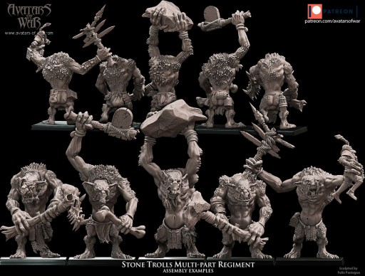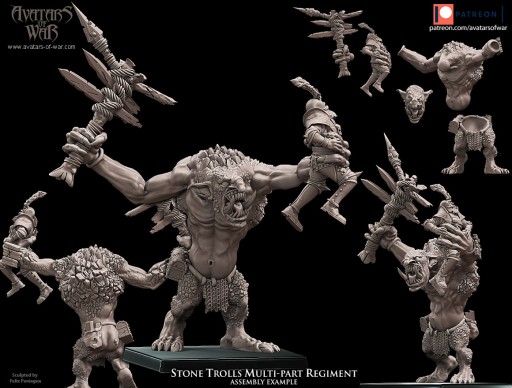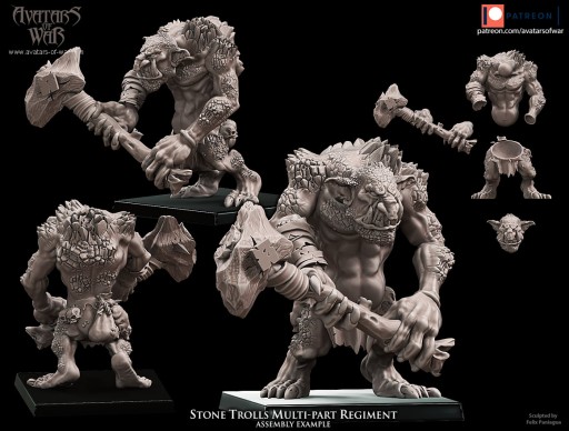Stone Trolls - x1 - Usługa Druku 3D Figurki do RPG lub Gier Bitewnych