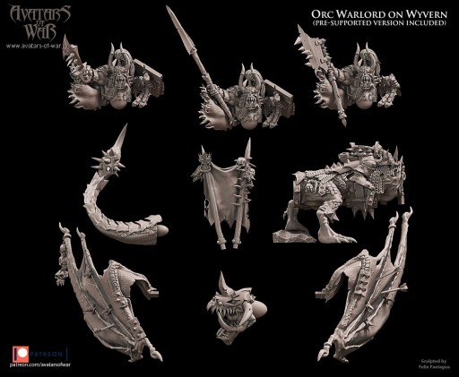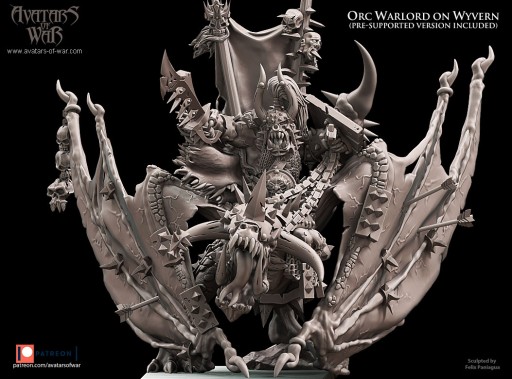 Orc Warlord Mounted on Wyvern - Usługa Druku 3D Figurki do RPG lub Gier Bitewnych