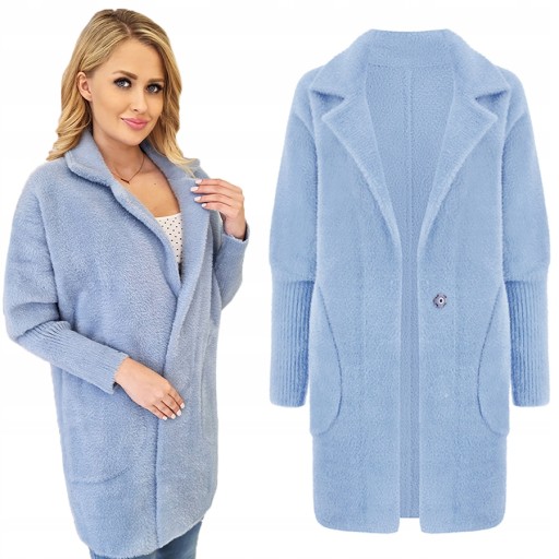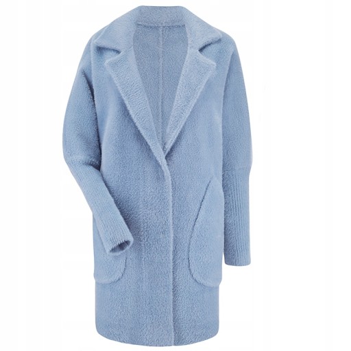 ALPAKA CIEPŁY PŁASZCZ NARZUTKA WEŁNA KOLORY BABY BLUE