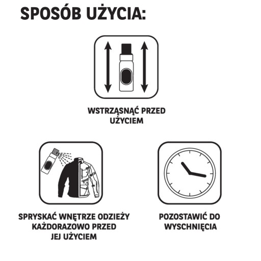 ✅Bakteriostatyczny środek do odświeżenia wnętrza odzieży motocyklowej, sportowej oraz codziennej.