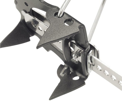 Wyjątkowy, elastyczny łącznik sprawia, że chodzenie w butach górskich z miękką podeszwą nie stanowi problemu. Raki współpracują z ruchami stopy nie utrudniając stawiania kolejnego kroku. Dodatkowa blaszka ułatwia zmniejszenie rozmiaru bez konieczności skracania łącznika. 12 stalowych zębów dba o przyczepność na lodzie i śniegu optymalnie rozkładając siłę nacisku. Zwiększa to zarówno bezpieczeństwo jak i żywotność raków, zwłaszcza w terenie mieszanym, gdzie śnieg przeplata się z kamieniami i skałą. Płaskie zęby atakujące dobrze osiadają w zmrożonym śniegu na stromych podejściach. Przesunięty ku przodowi profil kolejnych zębów dodatkowo stabilizuje pozycję.