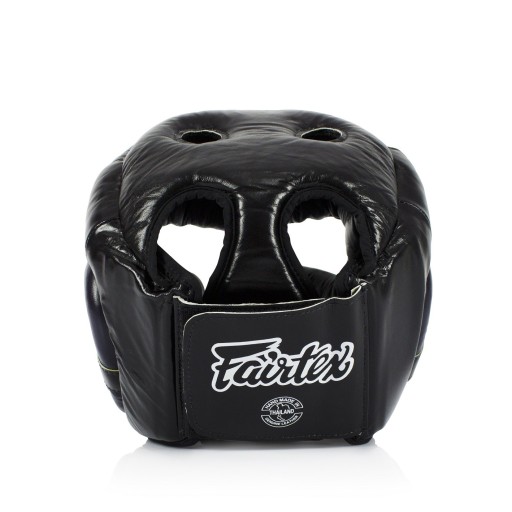 Konkretna propozycja dla osób ceniących sobie zdrowie i ochronę głowy. Kask został skonstruowany tak aby żaden cios nie przedostał się do twarzy i chroni wszystkie newralgiczne punkty na głowie: nos, kości policzkowe, podbródek i potylicę. Dzięki wyposażeniu w górny panel chroni także przed łokciami zadawanymi z góry przez co jest idealną propozycją dla trenujących Muay Thai. Mimo bardzo wysokiego poziomu zabudowania, twórcy zadbali o szerokie pole widzenia. Kask Fairtex HG13 to wybór profesjonalistów!