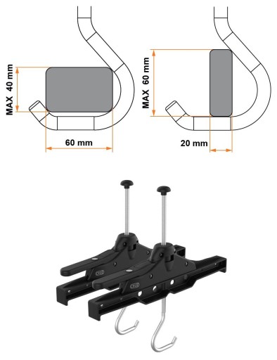 Uchwyty posiadają dodatkowy system z wbudowanymi zamkami, które zabezpieczają przewożone drabiny przed kradzieżą. Załadunek i montaż drabin trwa mniej niż około 2 minuty, pozwalając na dużą oszczędność czasu. Są kompatybilne z więszkością belek i bagażników dachowych, obecnie dostępnych na rynku.