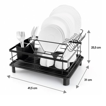 SUSZARKA DO NACZYŃ OCIEKACZ na sztućce DUŻA Z ODPŁYWEM DWUPOZIOMOWA CZARNA