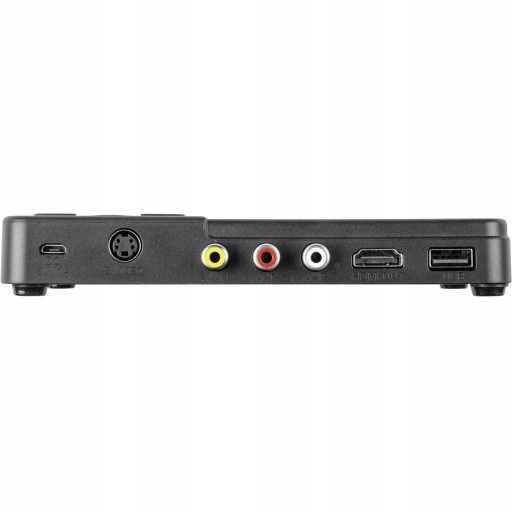 - Połączenia 1x FBAS / RCA (3x Cinch) , 1x S-Video, 1x wyjście HDMI, 1x Micro-USB, 1x USB, 1x gniazdo SD / SDHC
