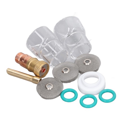 Funkcja:1. Zawartość zestawu akcesoriów: Nasz zestaw akcesoriów do pistoletu spawalniczego tig zawiera 2 szklane kubki, 1 soczewkę gazową, 1 krótką ściętą tuleję zaciskową, 3 dwuwarstwowe ekrany, 3 zielone o-ringi, 1 przednią pokrywę PTFE i 5 małych pudełek do przechowywania.