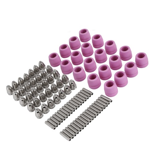 Materiały eksploatacyjne do tej przecinarki plazmowej zawierają 20 szt. ceramicznych nakładek osłonowych, 35 szt. elektrod, 35 szt. dysz.