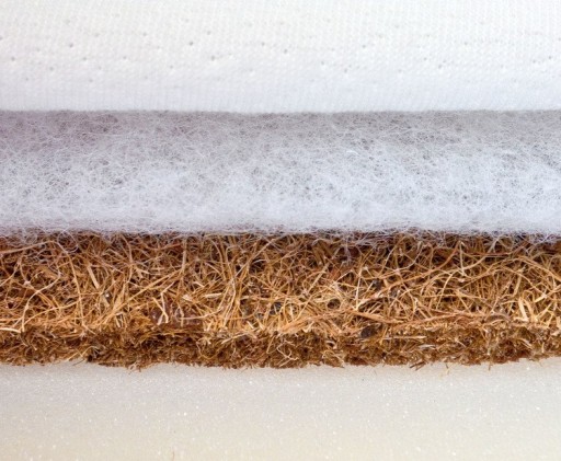 - wypełnienie materaca stanowi mata kokosowa (1 cm) otulona włókniną puszystą oraz warstwa pianki poliuretanowej (6 cm)