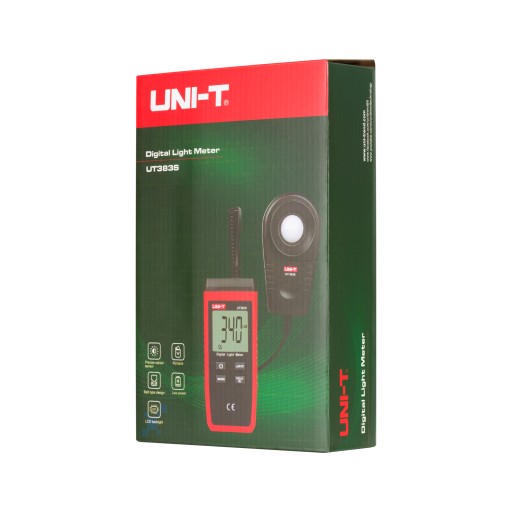 POMIAR NATĘŻENIA OŚWIETLENIAZakres pomiaru: 0~199 000 lxDokładność pomiaru: ?4%+8 (0~9999 lx); Rozdzielczość: 1 Lux (0~9999 lx)Przelicznik: 1 cd=10,76 lxFUNKCJE DODATKOWEPomiar w dwóch jednostkach: lx, cdZapis wartości MAX/MINZamrożenie ostatniego wskazaniaAutomatyczne wyłączaniePodświetlanie ekranuInformacja o przekroczeniu zakresu CECHY OGÓLNEZasilanie: 3x bateria 1,5 V (R03)Liczba pomiarów: 2/sWymiary: 110 x 53 x 26 mm Waga: 300 g