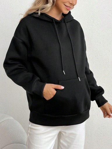 BLUZA Z KAPTUREM CIĄŻOWA CZARNA DRESOWA Z NADRUKIEM NA PLECACH SHEIN 36