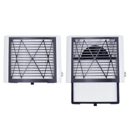 Duża powierzchnia wchłaniania pozwala na trzymanie nad urządzeniem obu dłoni naraz, a dzięki znacznej wydajności pochłaniacza zanieczyszczenia są wchłaniane wprost do filtra, pozostawiając stanowisko pracy czyste i wolne od szkodliwego pyłu Odpowiednio rozmieszczone od spodu urządzenia otwory wentylacyjne zapewniają swobodny przepływ powietrza Wentylator może dzięki temu pracować nieprzerwanie przez dłuższy czas, minimalizując ryzyko przegrzania.