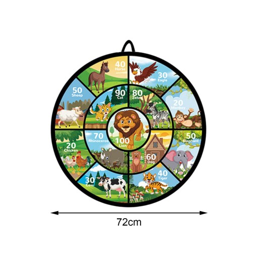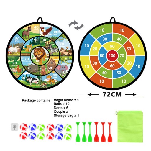 [Large Size Dart Board]29 inches double sided animal themed board, Large size improves hitting rate and is easier and more fun for children/beginners. Each darts board set contains 12 sticky balls(4pcs Green & 4pcs Blue & 4pcs Red ). high quality ensures that the ball can be firmly attached to the board. Don't have to worry about children losing the ball.