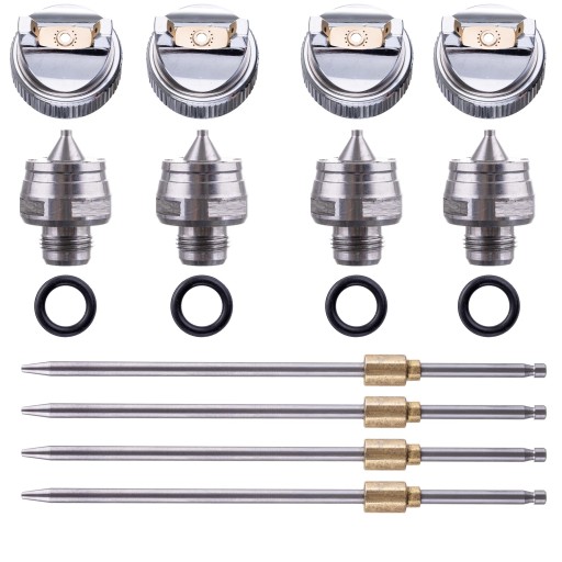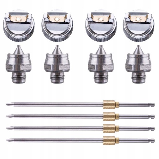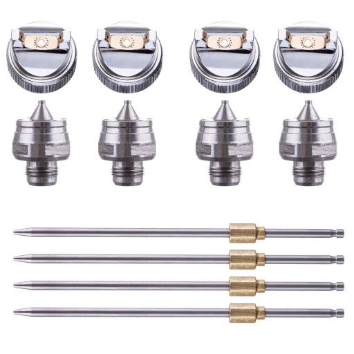 - Cztery dysze z iglicami: 1,4 + 1,7 + 2,0 + 2,5 - jedna zamontowana w pistolecie, trzy dostarczane osobno