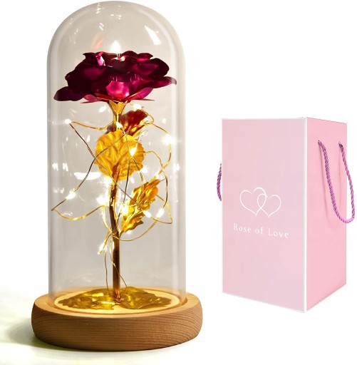 WIECZNA RÓŻA W SZKLE SZKLANA RÓŻA LED EA6B2
