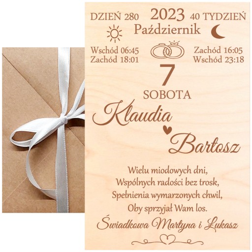 DREWNIANA PAMIĄTKA - KARTKA NA ŚLUB - PREZENT NA WESELE GRAWER