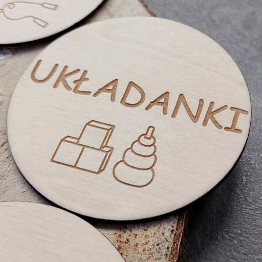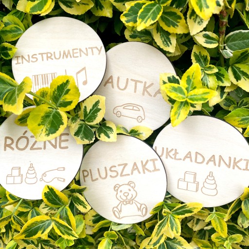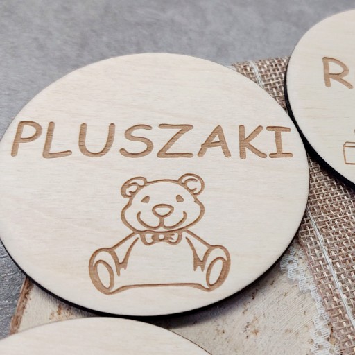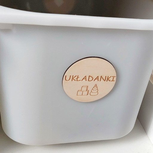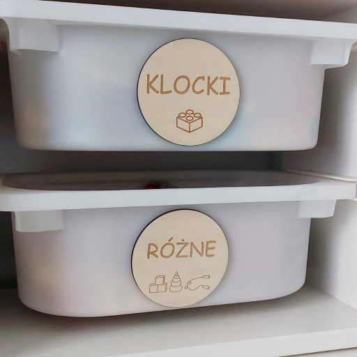 Drewniane Krążki/etykiety/tabliczki/oznaczenia na pudełka ikea Trofast, Kallax i nie tylko. Sprawdzą się na każdym pudełku. Idealne do pokoju dziecięcego