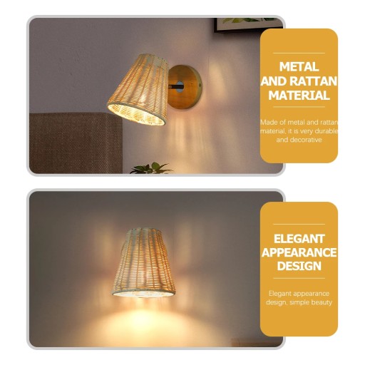 Cechy Kolor: jak pokazano Materiał: rattan, metal Rozmiar: 26.00X16.50X16.50cm/10.22X6.48X6.48in Rozmiar: 15.00X14.50X8.00cm/5.89X5.70X3.14in Napięcie: 220 V Gniazdo: E27 (bez żarówki) Prosta lampa ścienna w stylu rustykalnym, która oświetli Twoje życie, niezawodna i atrakcyjna. Stworzy przytulny efekt oświetlenia w Twoim domu, zasługujesz na taki. Odpowiednia dekoracja do przedpokoju, korytarza, sypialni, salonu, domu, hotelu, baru itp. Prosty kolor i zwięzły kształt, idealnie pasują do rodzajów stylów dekoracji wnętrz. Wykonany z dobrego materiału może jedynie stworzyć naturalną i ciepłą atmosferę w Twoim domu.