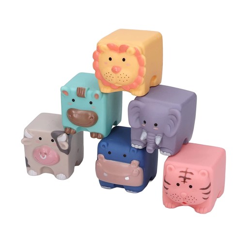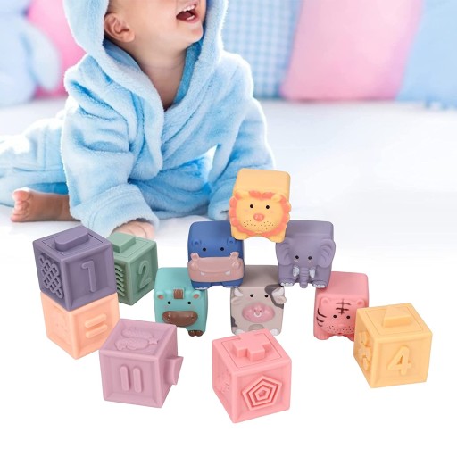 - Wiele możliwości układania klocków dla dzieci Te bloki sensoryczne mogą być używane jako zabawki do układania w stos, zabawki do gryzienia, zabawki kąpielowe, mogą unosić się na wodzie i ściskać, aby spryskać wodę, aby zapewnić dzieciom niekończącą się zabawę i jednocześnie towarzyszą dzieciom, aby dorosnąć. Bloki te mogą pomóc w ćwiczeniu umiejętności chwytania palców dziecka i koordynacji ręka-oko. Wiele kolorów na blokach pomaga postrzegać kolory dziecka i różne kształty pomagają dzieciom nauczyć się owoców, zwierząt i podstawowych koncepcji matematycznych.