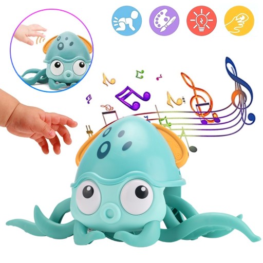 【Elektryczna zabawka muzyczna z ośmiornicą】 Ta muzyczna zabawka dla dzieci ma ciekawe kombinacje kolorów, a uroczy wzór w kształcie ośmiornicy z łatwością przyciąga uwagę dzieci, zachęcając je do raczkowania lub chodzenia z ośmiornicą. Świetne dla dzieci, aby rozwijać i uczyć się umiejętności motorycznych i koordynacji ręka-oko.