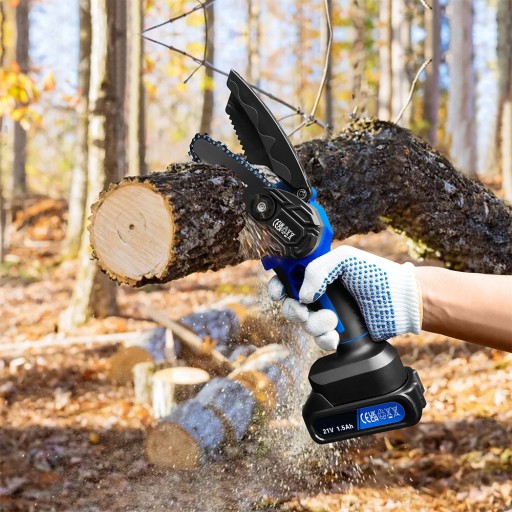 ⚡ - Mini elektryczna piła łańcuchowa jest lekka i przenośna, ma ręczną, antypoślizgową konstrukcję, jest wygodna w trzymaniu w dłoni i łatwa w sterowaniu.