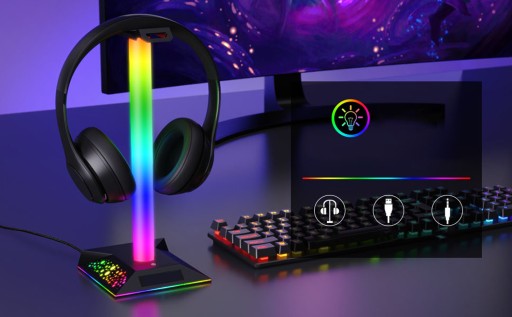 ПОДСТАВКА ДЛЯ НАУШНИКОВ RGB 10 РЕЖИМ ОСВЕЩЕНИЯ 1 АУДИОПОРТ 3,5 ММ 2 ПОРТ USB