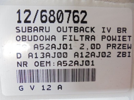 SUBARU OUTBACK IV OBUDOWA A52AJ01 2,0D