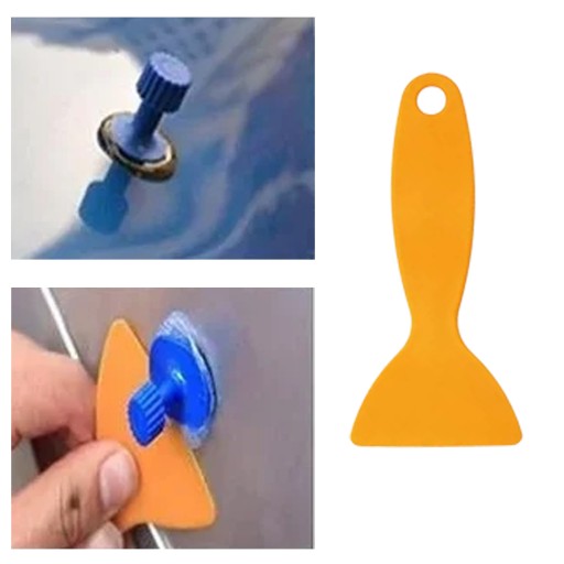Praca z klejem PDR jest intuicyjna i bezpieczna. Klejenie na gorąco doskonale sprawdza się przy drobnych i poważniejszych pracach montażowych i serwisowych. Wkład klejowy, który topi się w pistolecie, może szybko i trwale łączyć różne materiały. Uniwersalne zastosowanie kleju ma na celu ułatwić procesy naprawcze, prace plastyczne, modelarskie oraz wiele innych. Niezbędny do naprawy karoserii techniką PDR i nie tylko. W zestawie znajduje się szpachelka, która jest wszechstronnym narzędziem. Używana w branży nakładania folii na różne powierzchnie takie jak samochody, meble, okna itp. oraz do usuwania nadmiary kleju i innych pracach, które wymagają precyzyjnego i delikatnego działania na powierzchniach podatnych na zarysowania.