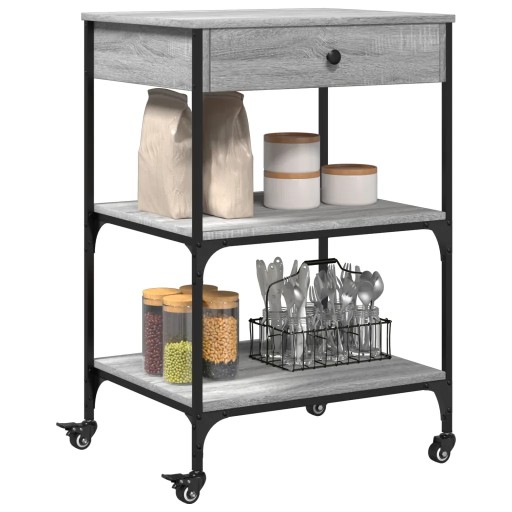Kuchenny Wózek Vintage Szary Dąb Sonoma 60x48x89,5cm