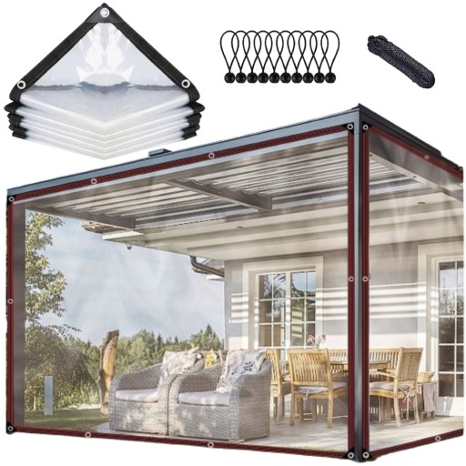 Водонепроницаемый ПРОЗРАЧНЫЙ БРЕЗЕНТ ДЛЯ САДОВОЙ ТЕРРАСЫ С СЕТОЧНЫМИ ПОЛОСАМИ 2х3м