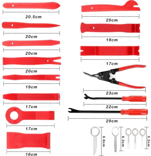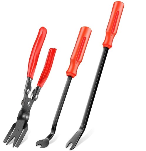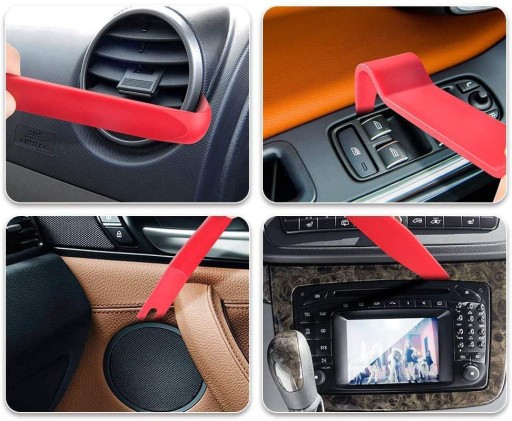 Specjalistyczne ściągacze do demontażu tapicerki, spinek i listew samochodowych. Przydaje się również przy wyjmowaniu radia samochodowego, licznika, sprzętu elektronicznego na zatrzaski, np. pilotów TV. Otwieraki wykonane z mocnego tworzywa (o różnej grubości i giętkości), dzięki nim nie wyszczerbisz rantów tapicerki podczas jej podważania.