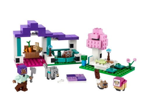 Opiekuj się małymi zwierzętami w Rezerwacie zwierząt LEGO® Minecraft®. Dzięki trzem ciekawym miejscom — ogrodzonej przestrzeni do zabawy ze spiżarnią, miejscu na piknik na świeżym powietrzu i przytulnemu dywanowi, na którym zmęczone zwierzęta mogą odpocząć — Twoi goście nie będą chcieli wyjść!
