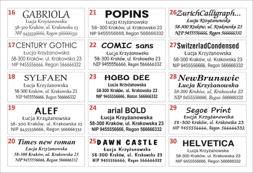 - najlepiej używać prostych i czytelnych czcionek. (zbyt cienkie i zbyt grube litery nie będą dobrze odbijały)