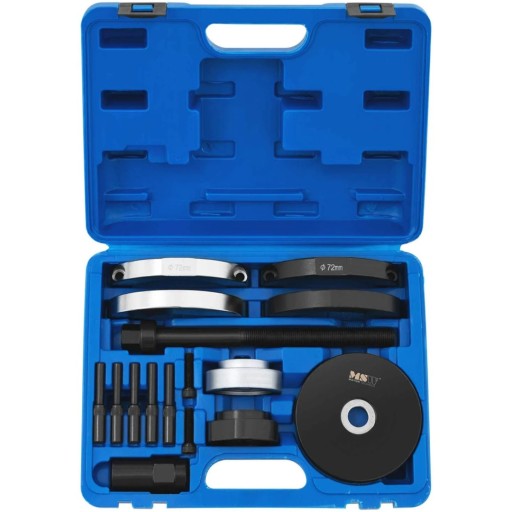 Ściągacz do łożysk piasty przedniej MSW-SPS-19 marki MSW to zestaw narzędzi do bezpiecznego montażu i demontażu zespołu łożyskowego piasty przedniego koła. Świetnie nadaje się do profesjonalnego użytku w warsztatach mechanicznych i serwisach pojazdów. Komplet pasuje do: Audi A2, Skoda Fabia 00-, VW Polo, VW Fox 05- i Seat Ibiza 02-. Wykonanie ze stali z antykorozyjnym pokryciem zapewnia narzędziom długą trwałość. Całość znajduje się w wygodnej walizce.