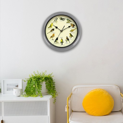 Zegar dźwiękowy z muzycznymi ptakami Dekoracyjna dekoracja pokoju na szaro